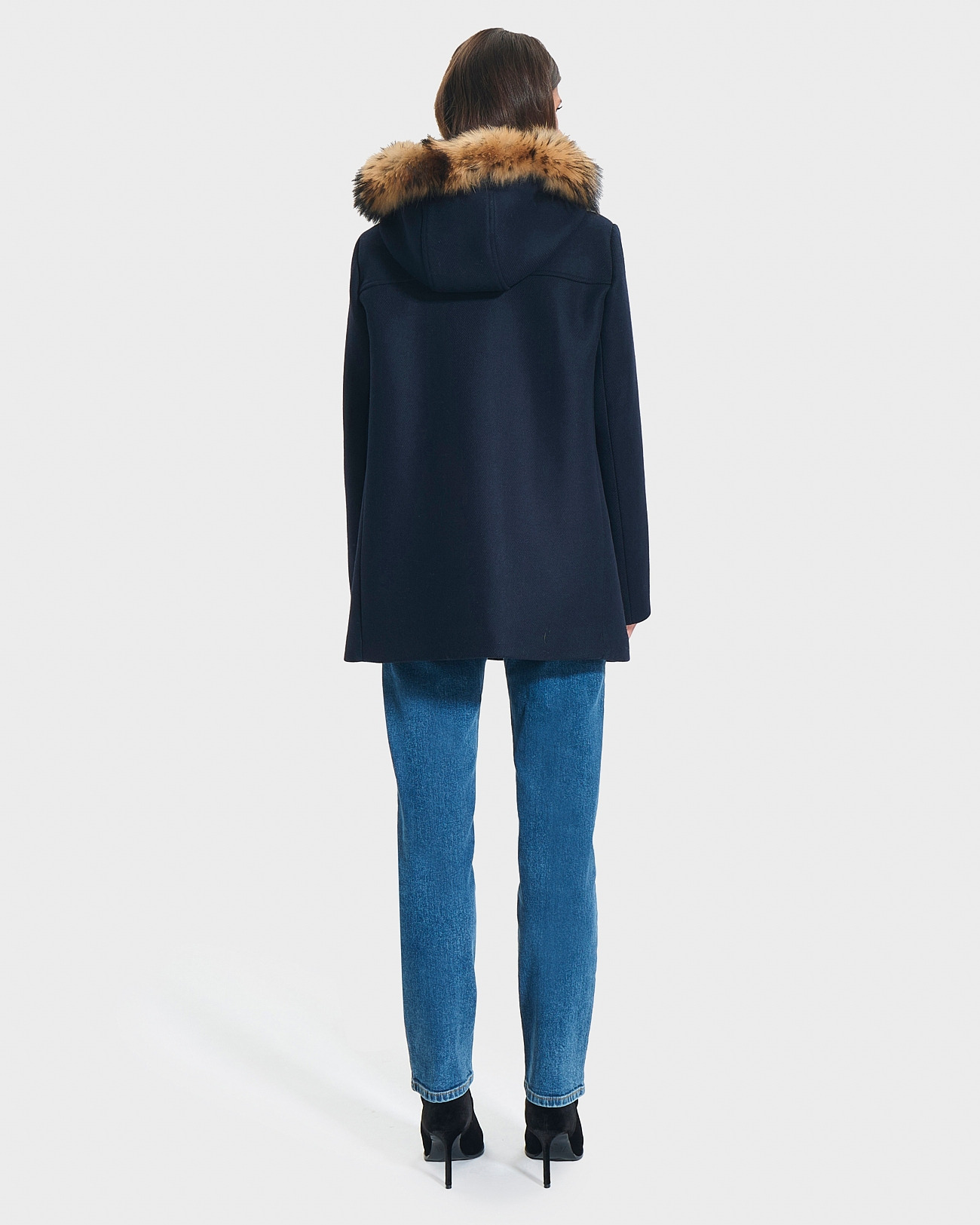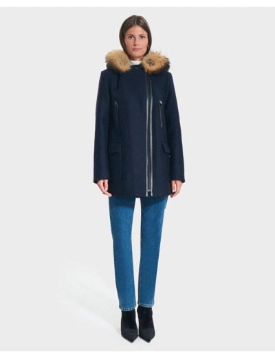 Le manteau Gabie Nocturne en laine incarne l’élégance hivernale réinventée. Sa silhouette droite et sa capuche en fourrure véritable apportent une touche sophistiquée à vos tenues quotidiennes.