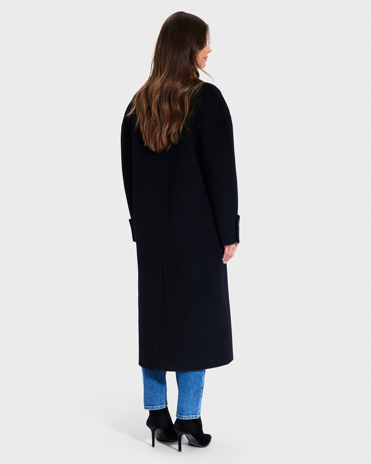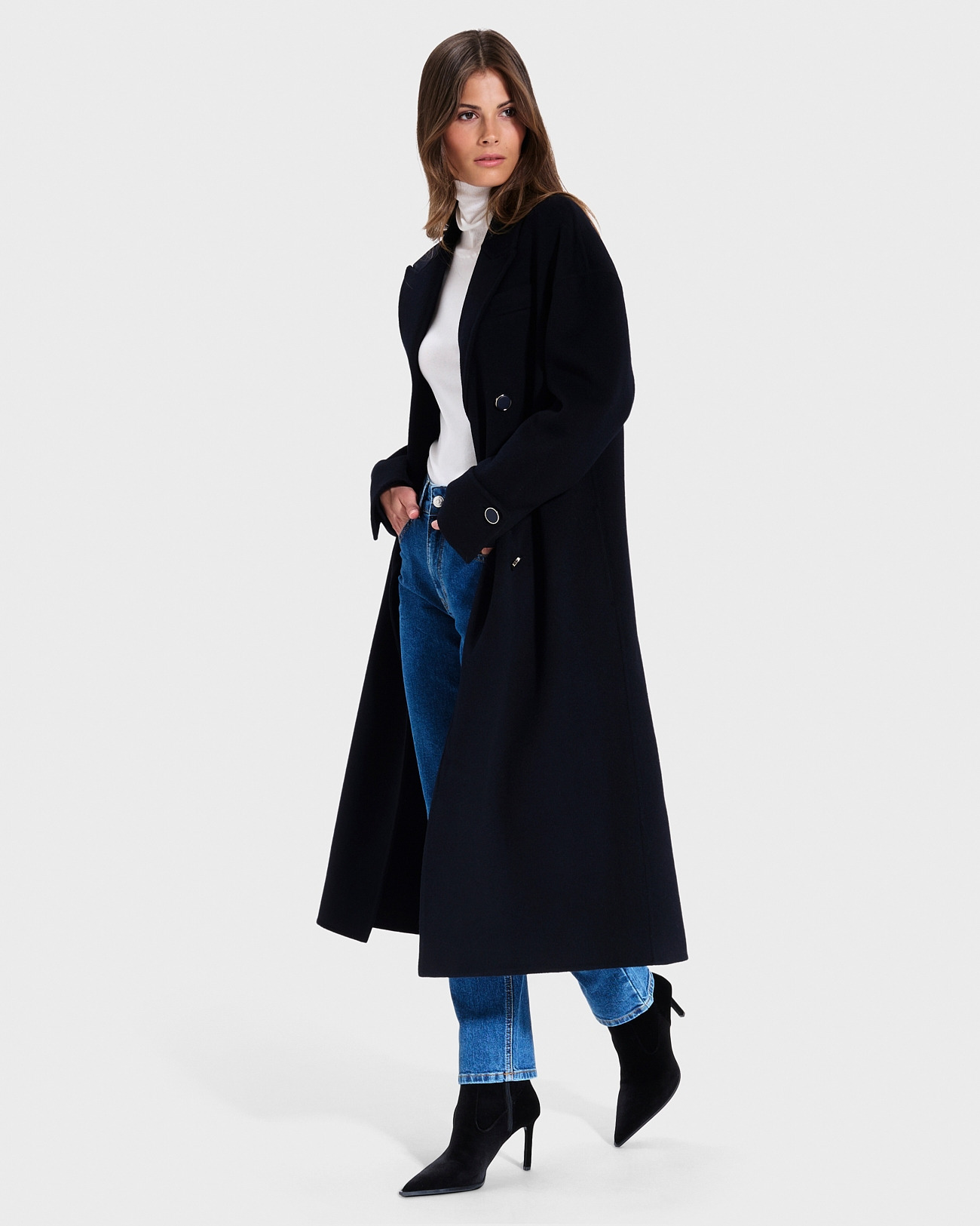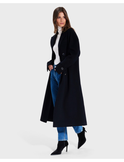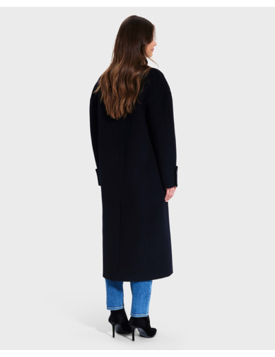 Confectionné dans un mélange de laine et polyamide, ce manteau long se distingue par sa coupe droite oversize qui allie modernité et aisance de mouvement. Sa fermeture croisée souligne la silhouette tout en offrant une protection optimale contre le froid. La teinte nocturne, profonde et intemporelle, s’adapte facilement à toutes vos tenues, du bureau aux sorties en ville.