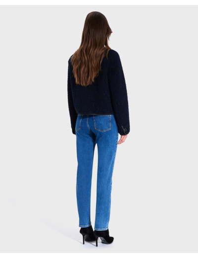 Conçue pour vous accompagner au quotidien, la veste Verveine Nocturne facilite vos associations mode tout en vous garantissant une allure soignée sans effort. Son coloris nocturne polyvalent s’adapte à toutes vos envies, du bureau à vos sorties en soirée.
