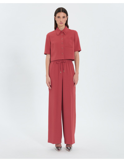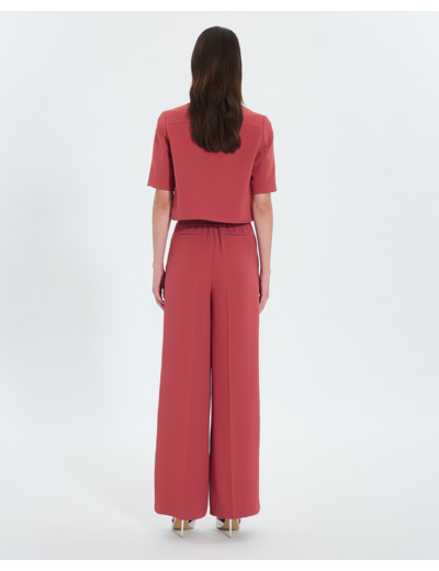 Adoptez l’élégance décontractée avec le pantalon ample en crêpe coloris brique, un essentiel pour sublimer votre silhouette avec modernité. Son design fluide et ses lignes latérales affinent la jambe tout en offrant un confort optimal.