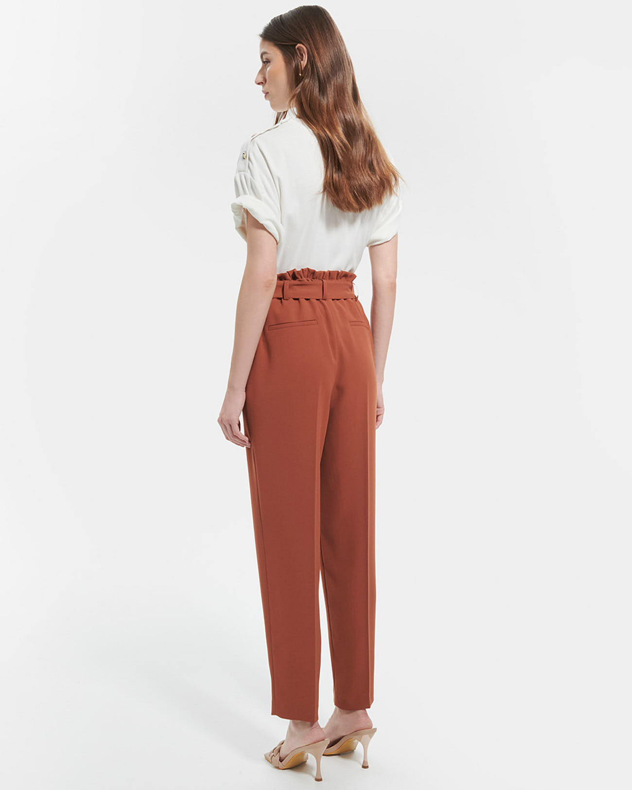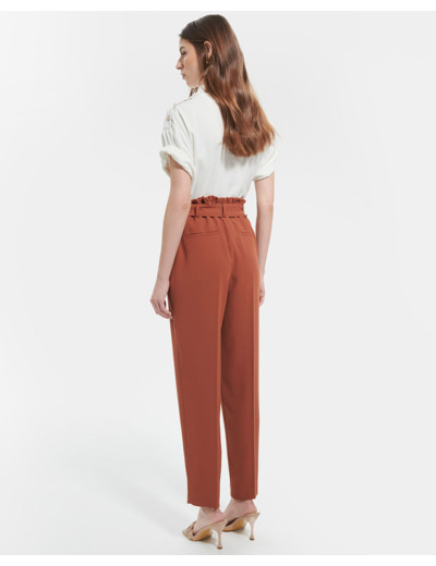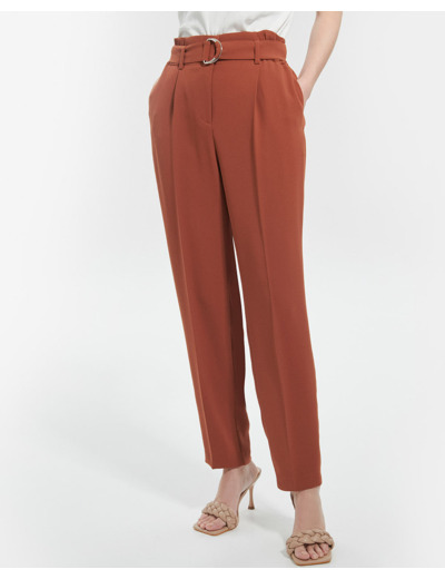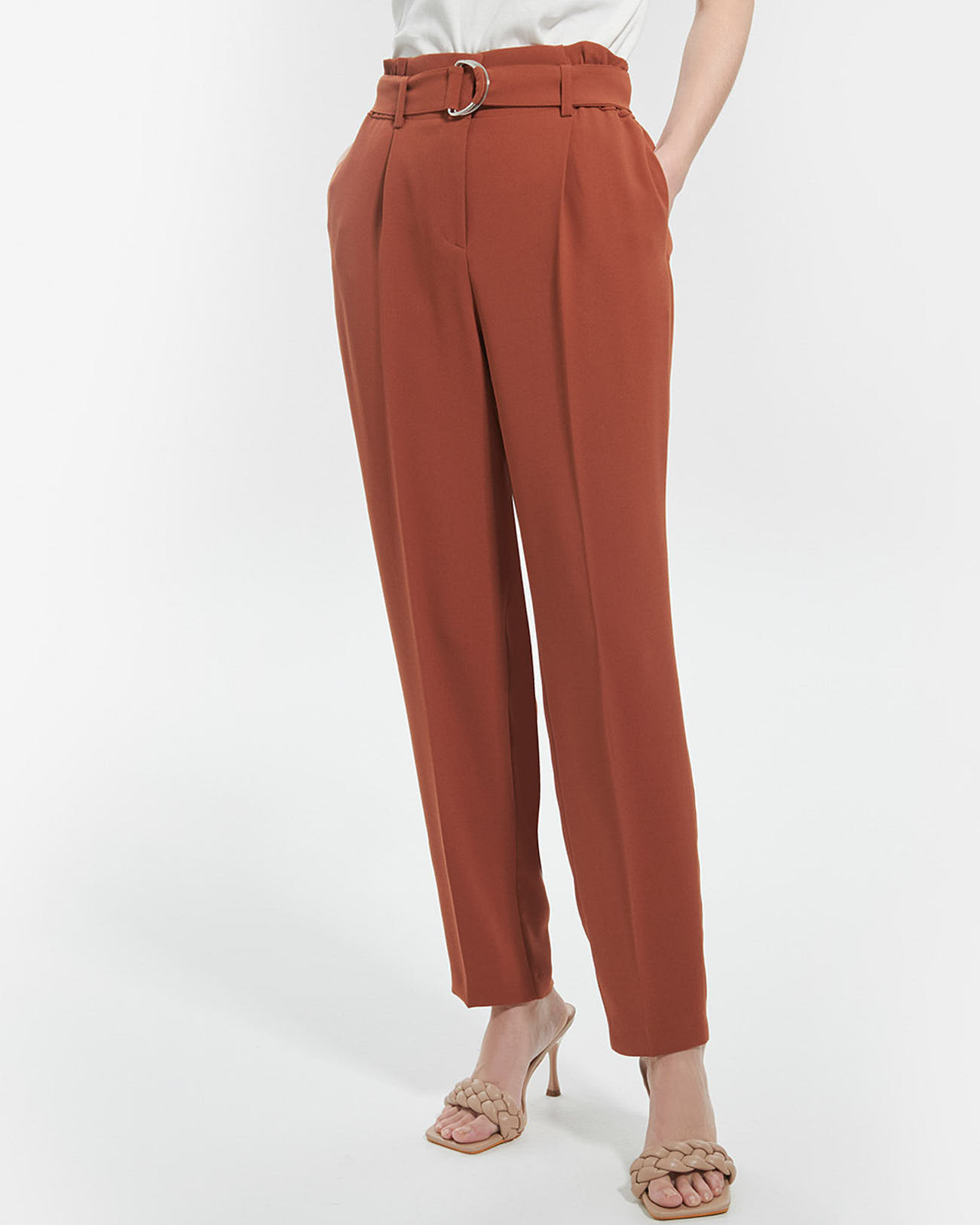 Confortable et facile à associer, ce pantalon valorise votre allure tout en offrant une liberté de mouvement grâce à sa coupe droite. La ceinture intégrée souligne la taille pour une silhouette harmonieuse et moderne, tandis que la couleur rouille apporte chaleur et caractère à vos tenues, du bureau à vos rendez-vous.