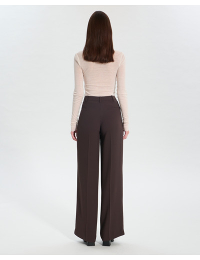 Confectionné en crêpe fluide 100 % polyester, ce pantalon se distingue par son coloris chocolat profond, facile à assortir. Sa coupe palazzo offre une liberté de mouvement tout en allongeant la jambe, parfait pour passer du bureau à un dîner sans effort. La fermeture boutonnée et les passants ceinture ajoutent une finition soignée, renforçant son allure chic et polyvalente.