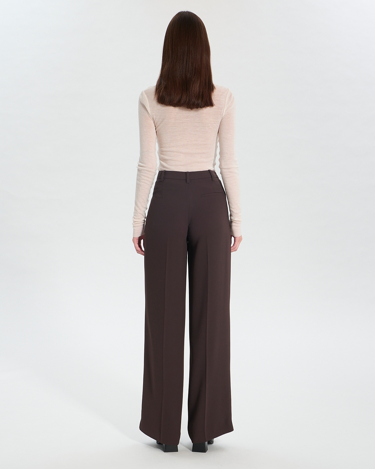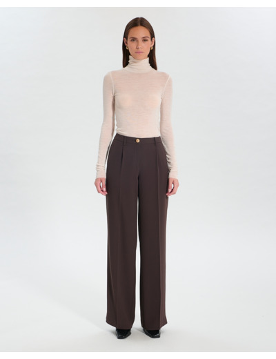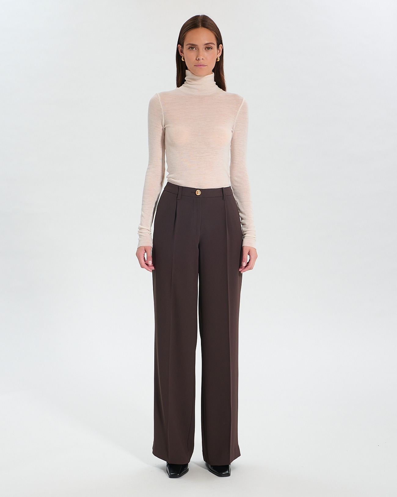 Le pantalon Pleyel Chocolat incarne l’élégance fluide et moderne. Sa coupe palazzo sublime la silhouette avec une touche de sophistication intemporelle.