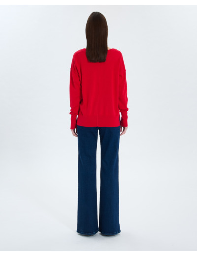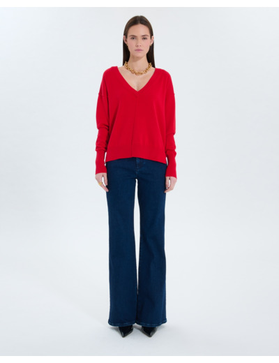 Pull Fin À Col V Rouge