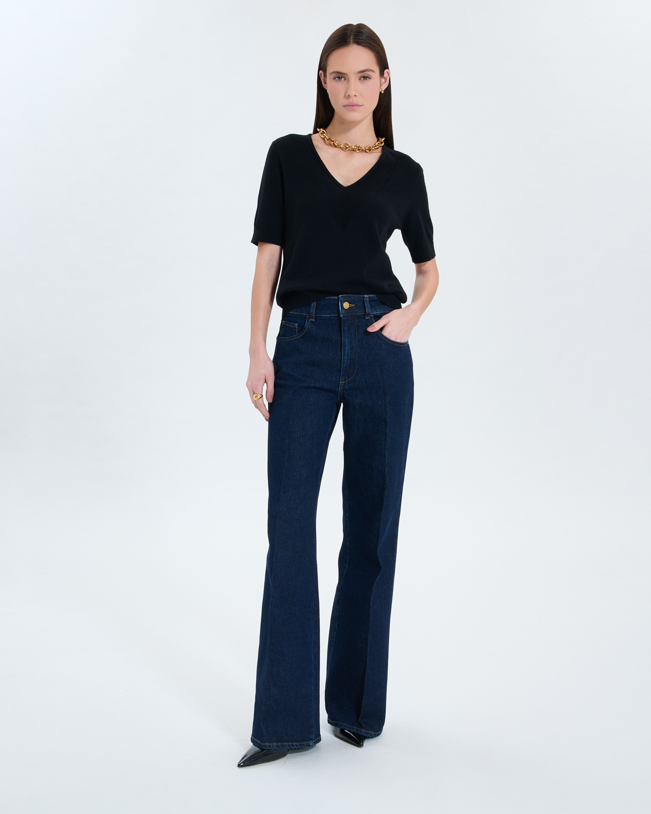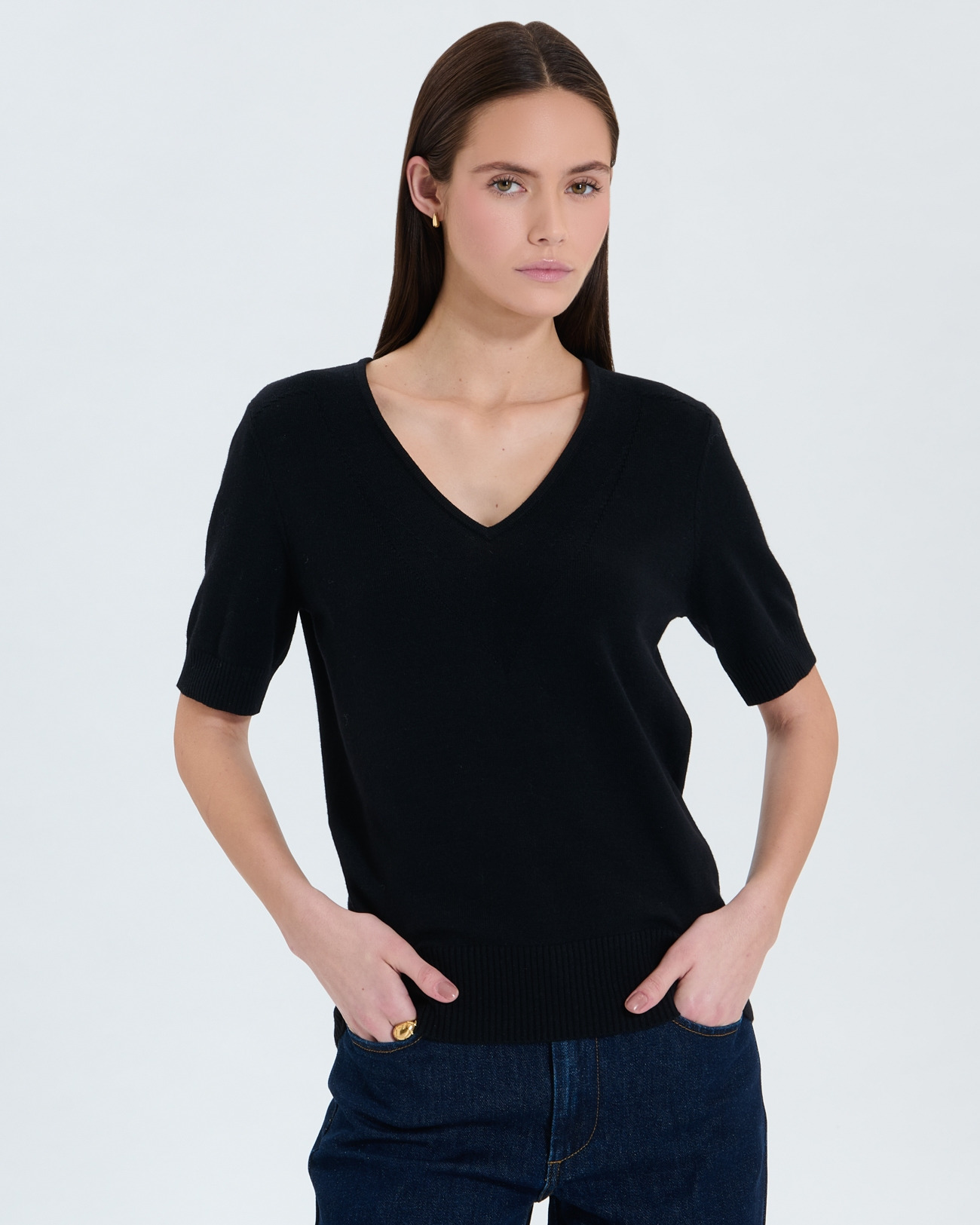 Sublimez votre allure avec ce pull manches courtes noir, alliant élégance et modernité. Sa coupe raffinée et son coloris intemporel en font un incontournable de votre garde-robe.