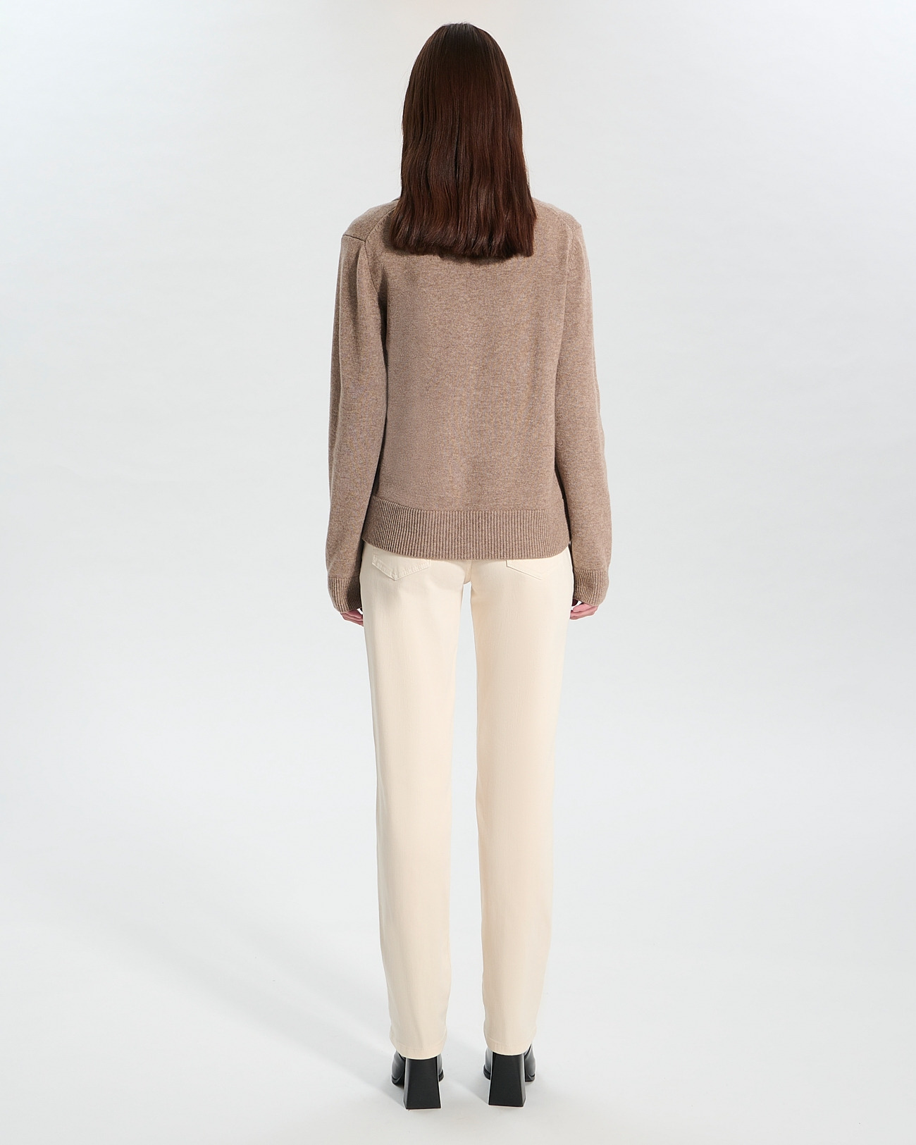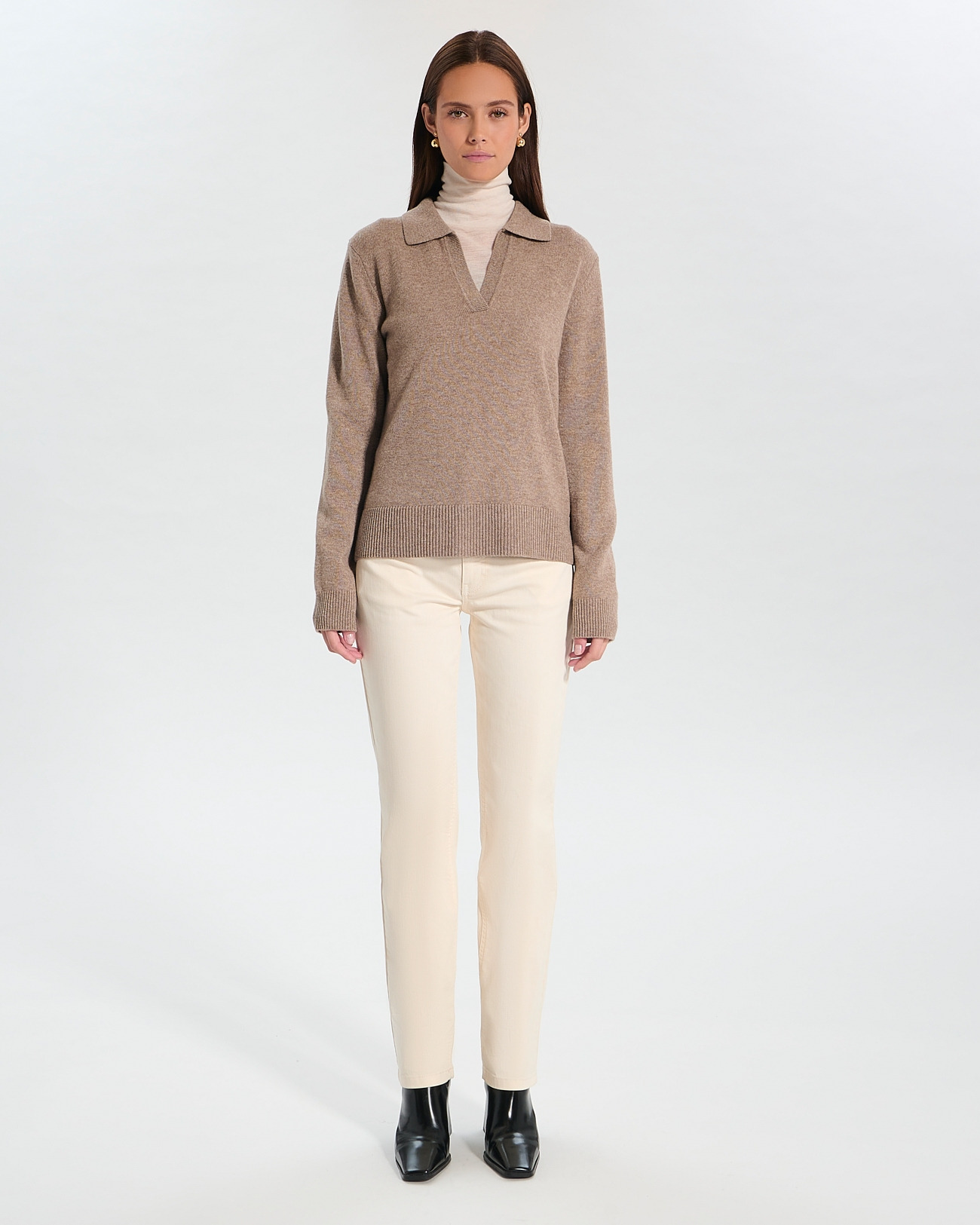 Conçu pour envelopper votre silhouette d’un confort léger, ce pull ample dévoile un décolleté en V à revers qui souligne délicatement le cou. Sa teinte noisette subtile s’harmonise parfaitement avec un jean clair pour un look moderne et sophistiqué. La laine mérinos garantit chaleur et respirabilité, idéale pour traverser les saisons avec style.
