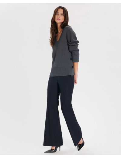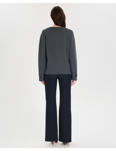 Confectionné dans un mélange de fibres soigneusement choisi, ce pull associe douceur et résistance. Les manches longues avec bracelets et les détails boutonnés apportent une touche raffinée à ce modèle facile à porter au quotidien. Son coloris gris chiné s’accorde parfaitement avec un jean ou une jupe pour un look moderne et confortable.