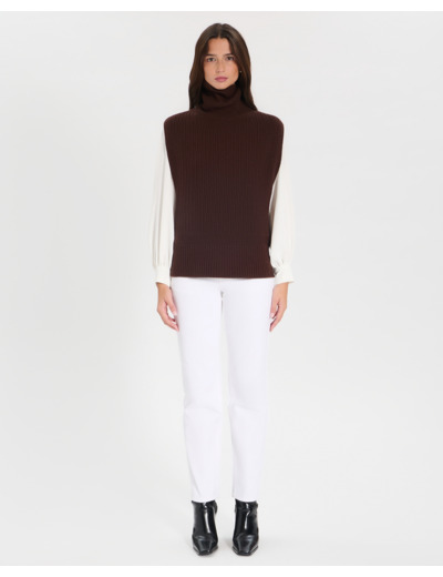 Profitez d’un vêtement qui valorise votre style tout en garantissant une sensation de bien-être durable. Le col roulé protège efficacement du vent, tandis que l’absence de manches facilite la superposition sans encombrement. Le coloris chocolat s’adapte à toutes les carnations et apporte une note chaleureuse à votre garde-robe.