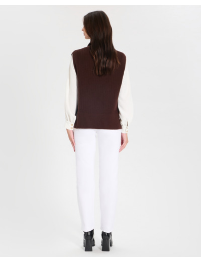 Chaleur et élégance se rencontrent dans le pull sans manches Nina Chocolat, une pièce incontournable pour sublimer votre silhouette avec raffinement. Sa teinte chocolat profonde apporte une touche sophistiquée à toutes vos tenues.