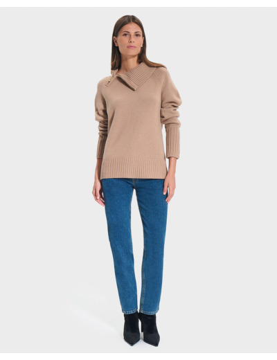 Adoptez l’élégance décontractée avec le pull Nuala camel, un incontournable de votre garde-robe hivernale. Son design asymétrique et son coloris chaud apportent une touche moderne à vos looks.