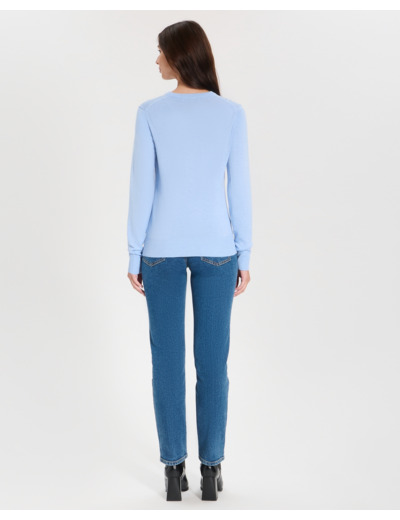 Vous bénéficiez d’un vêtement polyvalent, facile à associer et agréable à porter toute la journée. Sa composition assure chaleur sans lourdeur, tandis que le bleu ciel illumine votre teint naturellement. Ce pull est un choix sûr pour allier confort, élégance et modernité.
