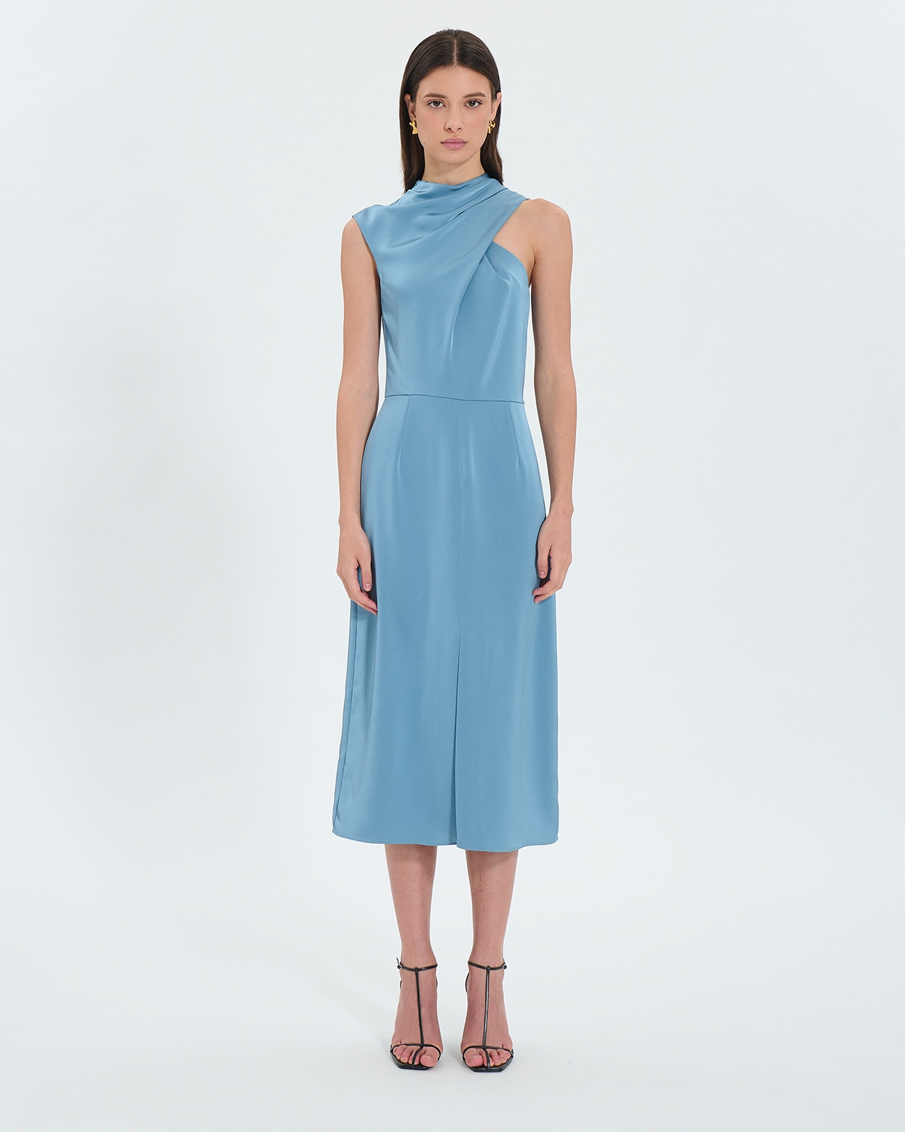 Robe Asymétrique Satinée Bleue