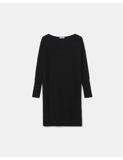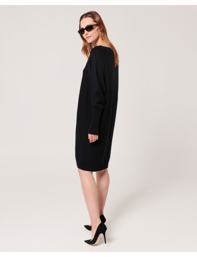 Conçue pour allier confort et style, cette robe mi-longue à manches longues dévoile un col bateau qui souligne délicatement le port de tête. Le noir profond de la maille valorise toutes les carnations, tandis que sa longueur de 89 cm offre une allure moderne et facile à porter en toutes occasions.