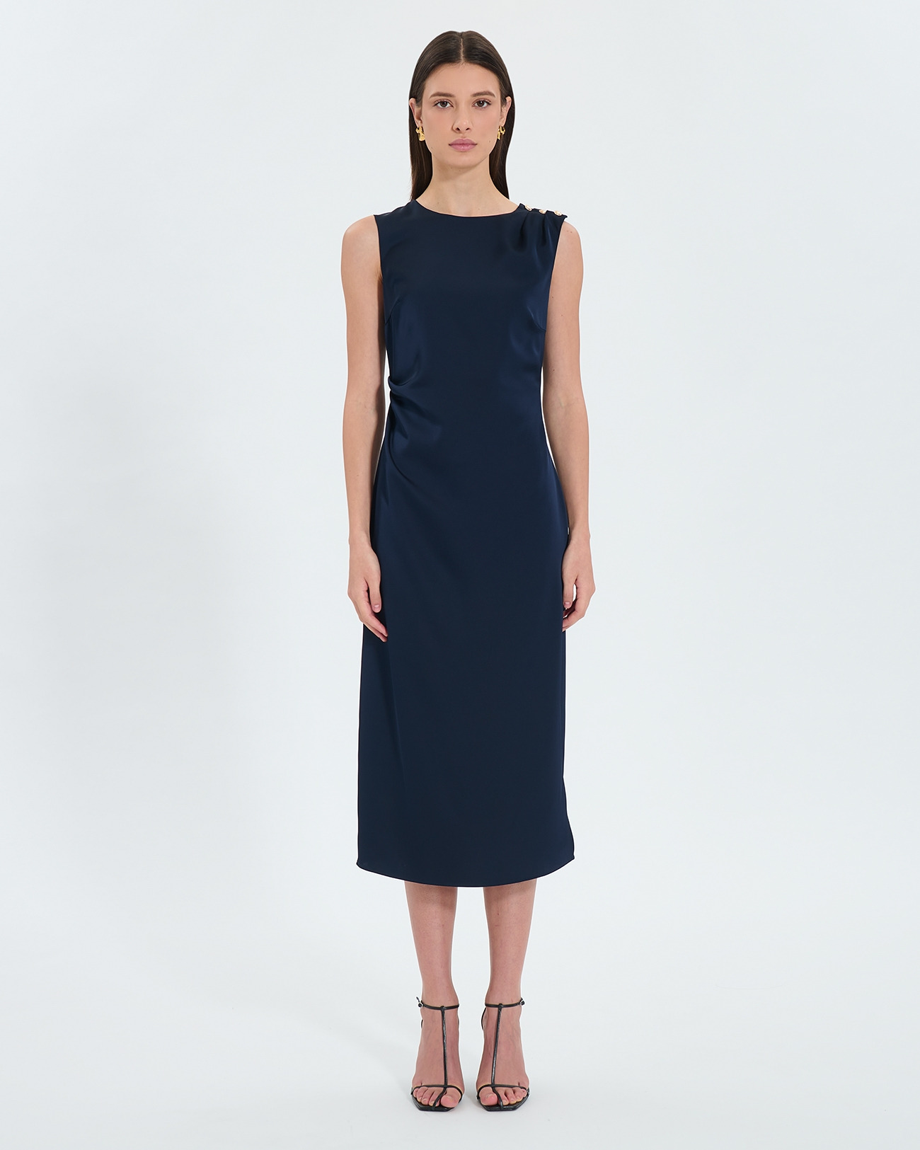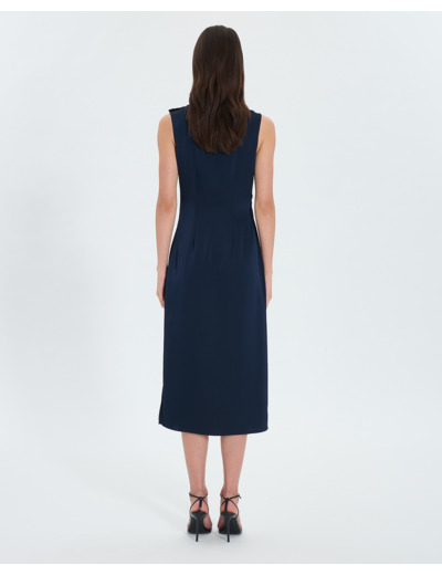 Sublimez vos soirées avec cette robe mi-longue au coloris nocturne intense, pensée pour révéler votre élégance naturelle. Une pièce incontournable pour vos événements où raffinement rime avec modernité.
