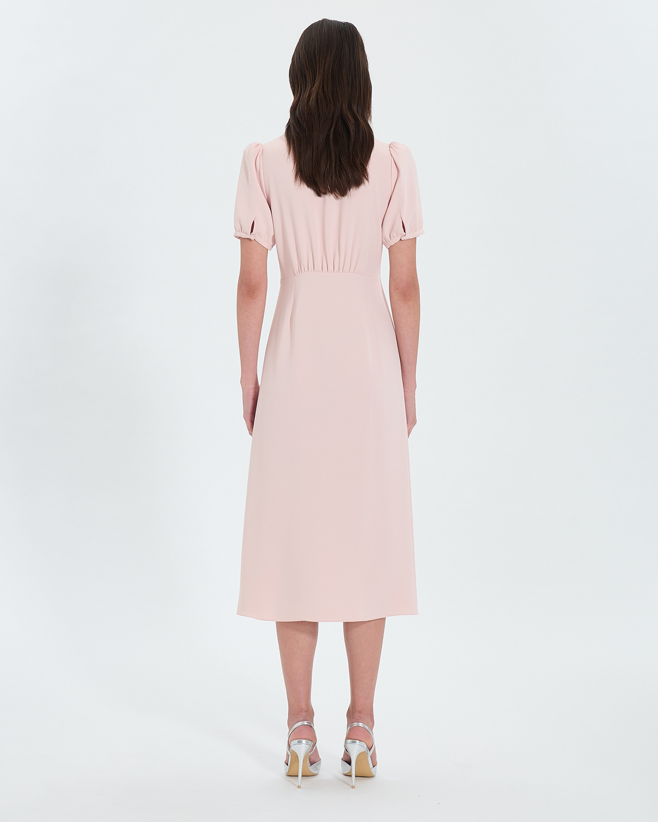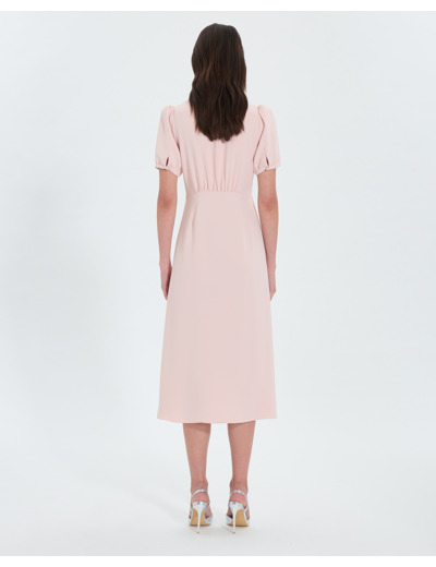 Sublimez votre allure avec la robe midi en crêpe Nude, une pièce qui allie douceur et élégance intemporelle. Son design raffiné et ses détails délicats font de cette robe un incontournable pour vos moments d’exception.