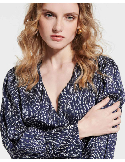 Réponse : Sa viscose légère et ses manches longues la rendent idéale pour les soirées d’été ou les journées plus fraîches.