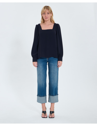 Confectionné dans un tissu léger et fluide, ce top épouse délicatement la silhouette tout en offrant un confort optimal. Les manches longues et le col carré structurent la pièce avec modernité, idéale pour une allure sophistiquée en toute occasion.