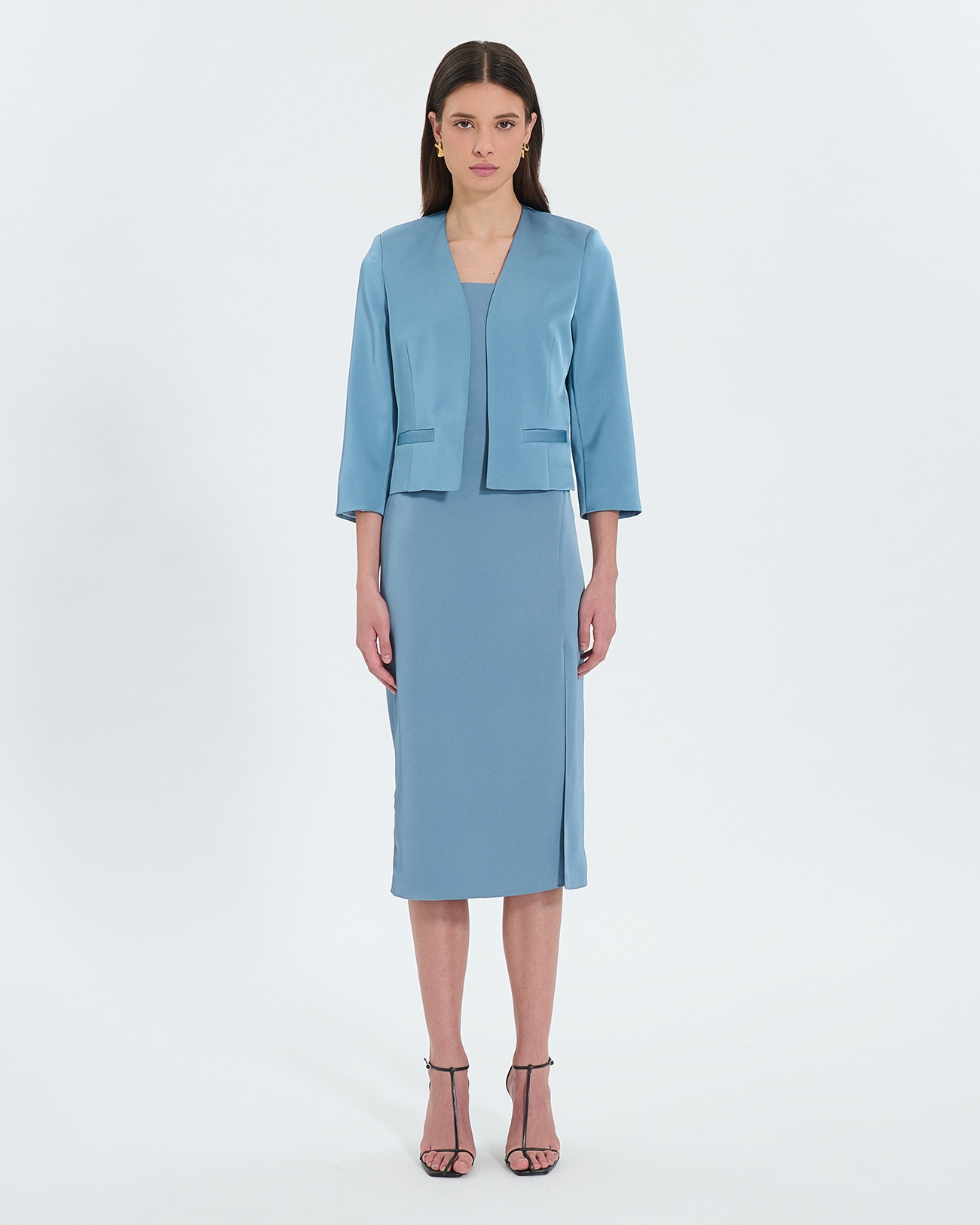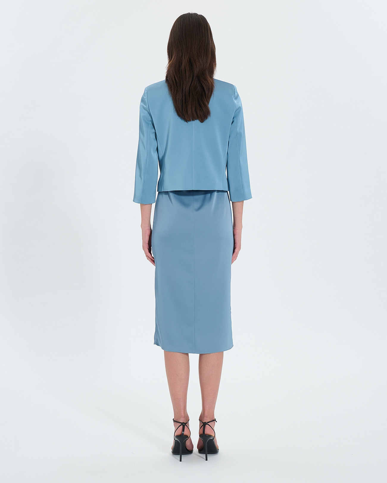 Conçue pour épouser parfaitement la forme du corps, cette veste courte droite se distingue par ses épaulettes marquées et son col tailleur qui renforcent une allure affirmée. Le satin bleu profond capte la lumière avec subtilité, idéal pour rehausser une robe ou un pantalon chic. Son style épuré facilite les associations, faisant de cette veste un incontournable de votre garde-robe.