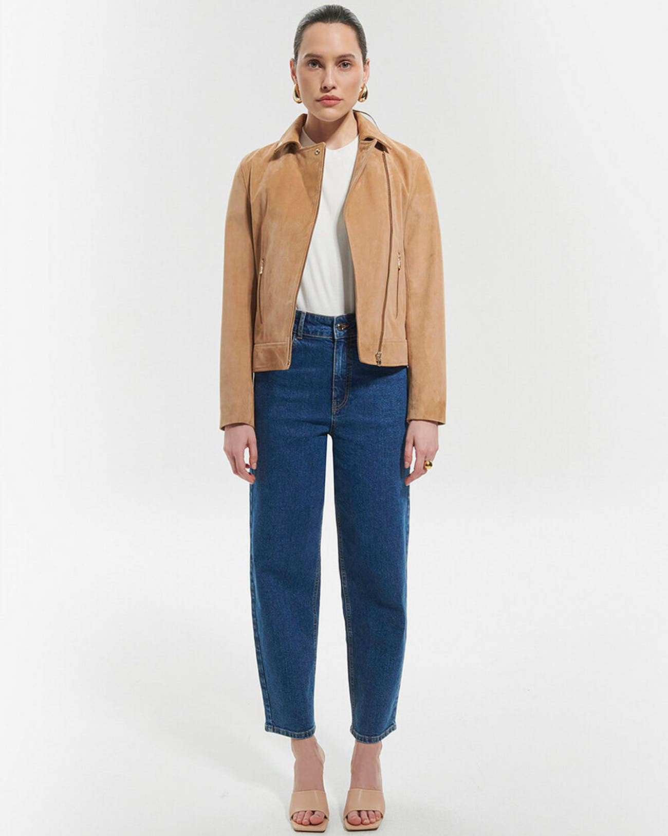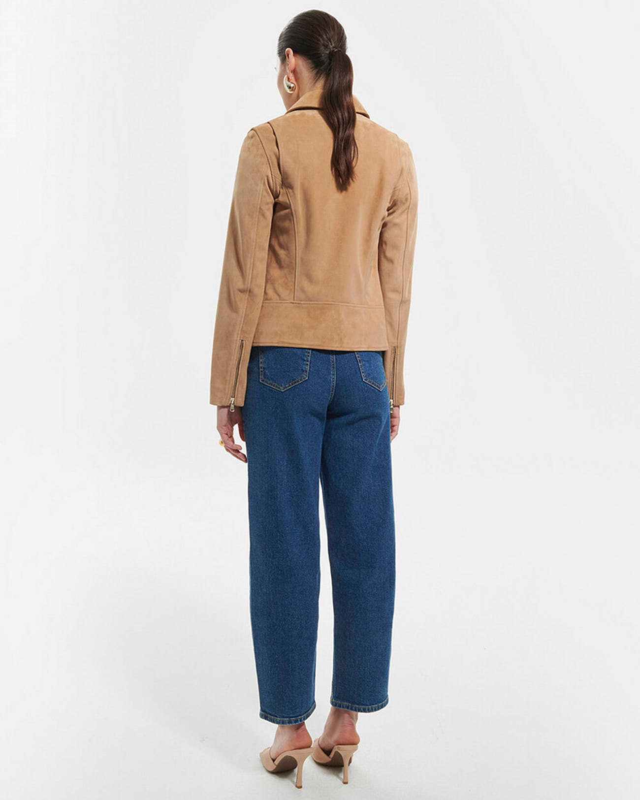 Conçue pour sublimer votre silhouette, cette veste associe la douceur du suède à un design moderne. Le zip asymétrique et les découpes arrondies dans le dos apportent une touche de caractère, tandis que les soufflets garantissent une liberté de mouvement optimale. Polyvalente, elle s’adapte aussi bien à un look casual qu’à une tenue plus sophistiquée.